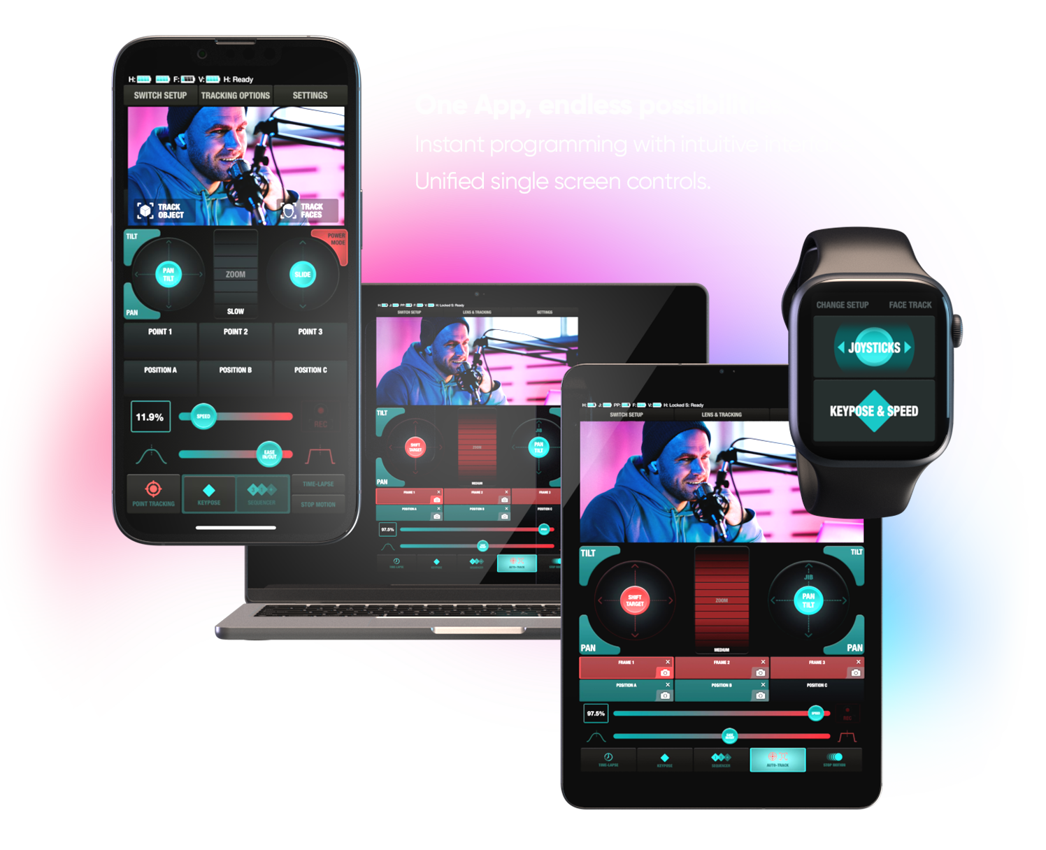 DollyPLUS follows straight or curved tracks across your space while SliderPLUS lifts or lowers your camera—creating multi-dimensional motion that adds cinematic depth to every shot.
