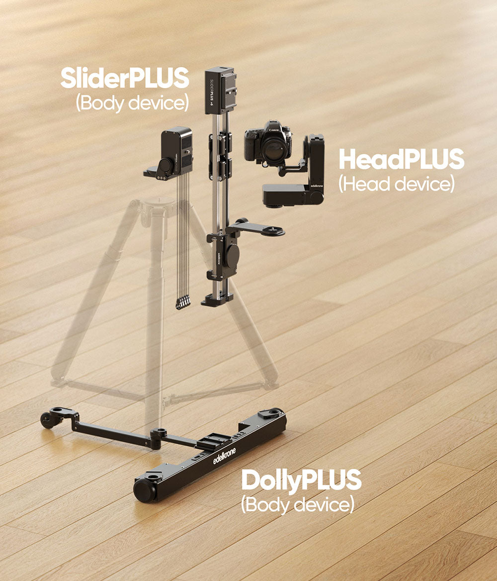 Pairing HeadPLUS with SliderPLUS enables stunning 3+1 axis camera movements with active point tracking — ideal for most commonly used cinematic motion scenarios.
