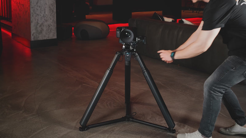 With traditional tripods, adjusting the height means you must physically lift the entire system—the tripod and everything mounted on it. You need to crouch, support the weight with one hand, adjust the legs with the other, and repeat this balancing act until you’re done. In those moments, every kilogram matters.
